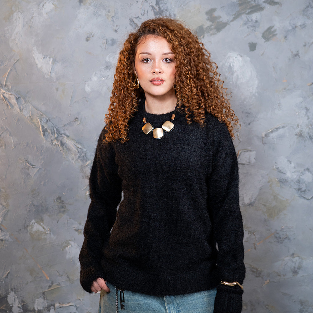 Black Mohair Round Neck